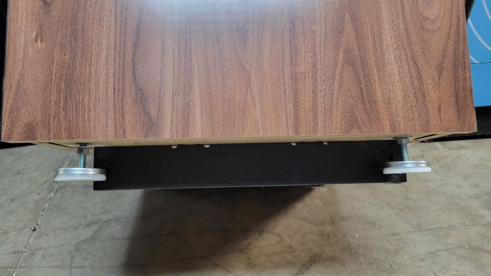 The leg levelers are shipped behind the coin door in the coin bucket. To install, screw the levelers into the designated receptacles. Adjust the height by raising or lowering the feet as needed to ensure proper leveling.