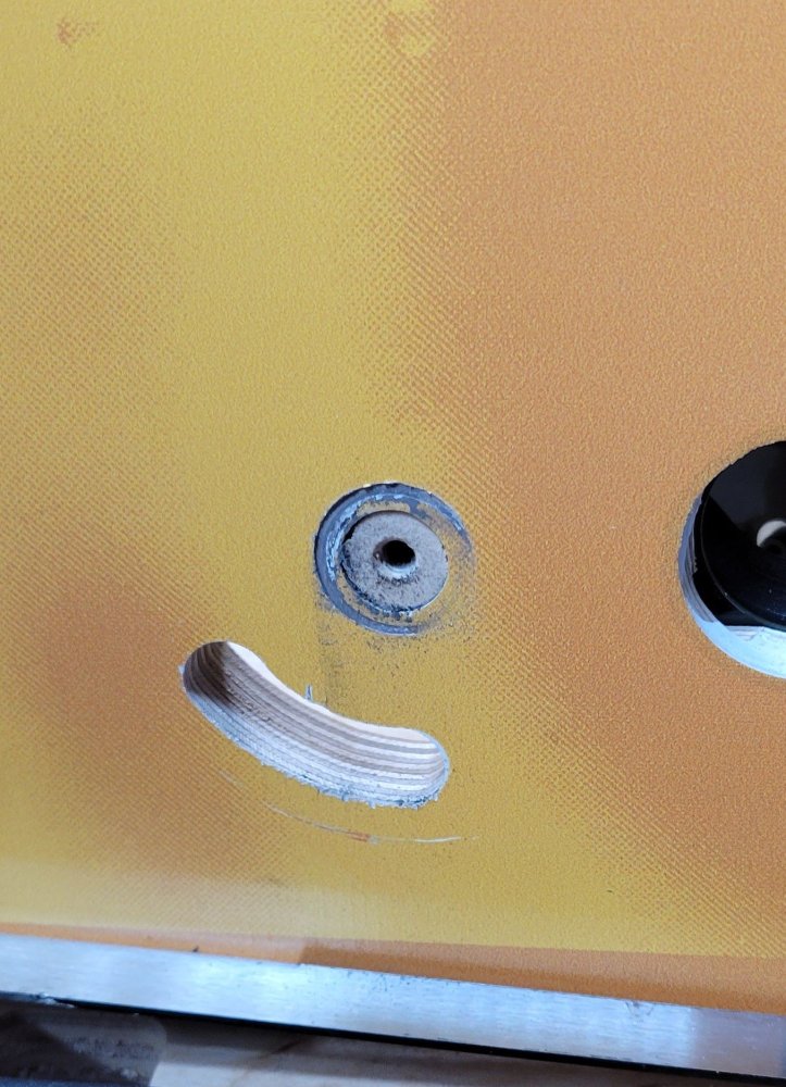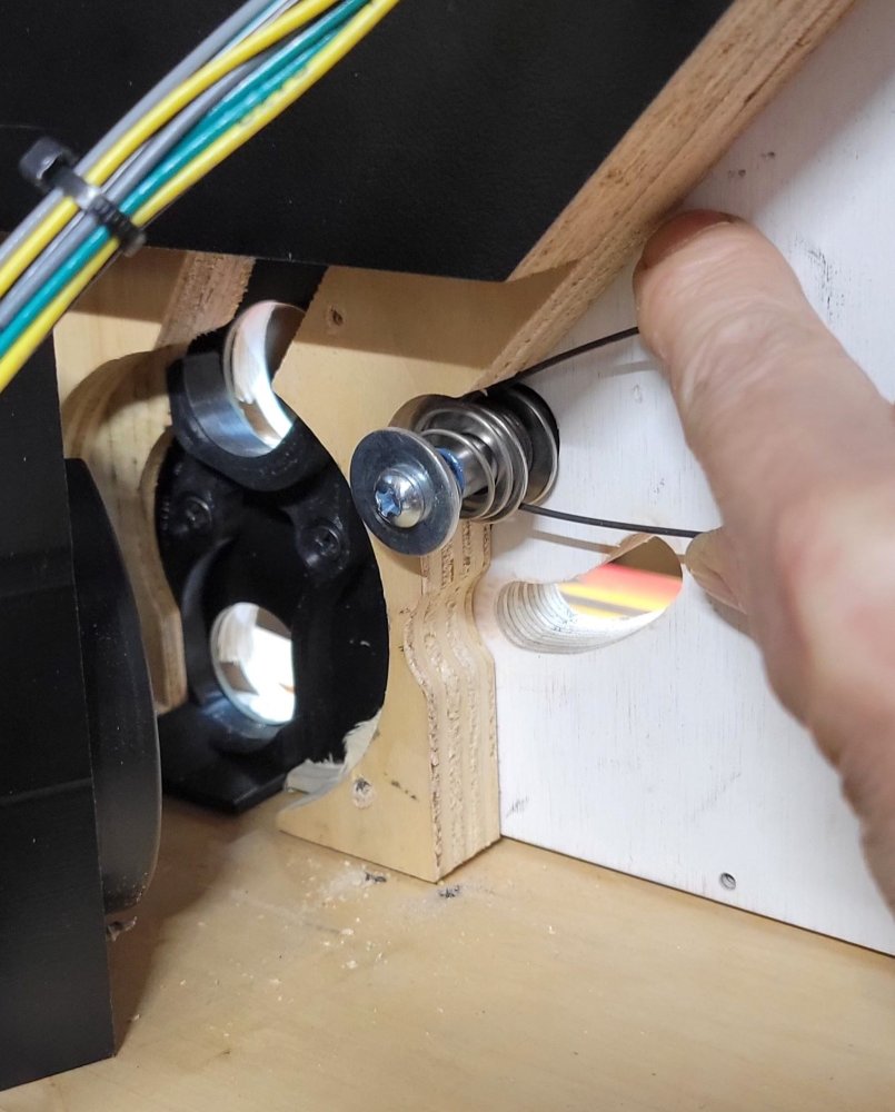 2) Remove wooden plug from pivot point, push out from front of Playfield