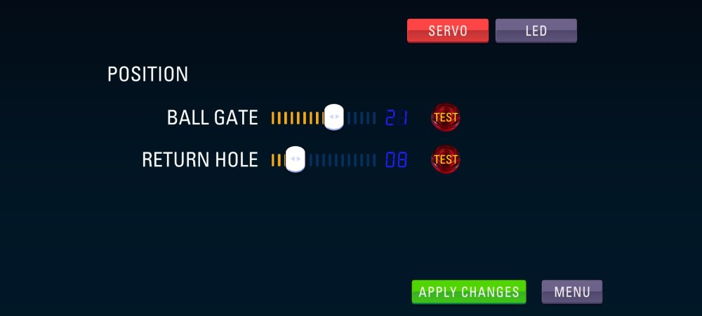 3) Power on game, servo should cycle from Ball gate to return hole and back to Ball gate